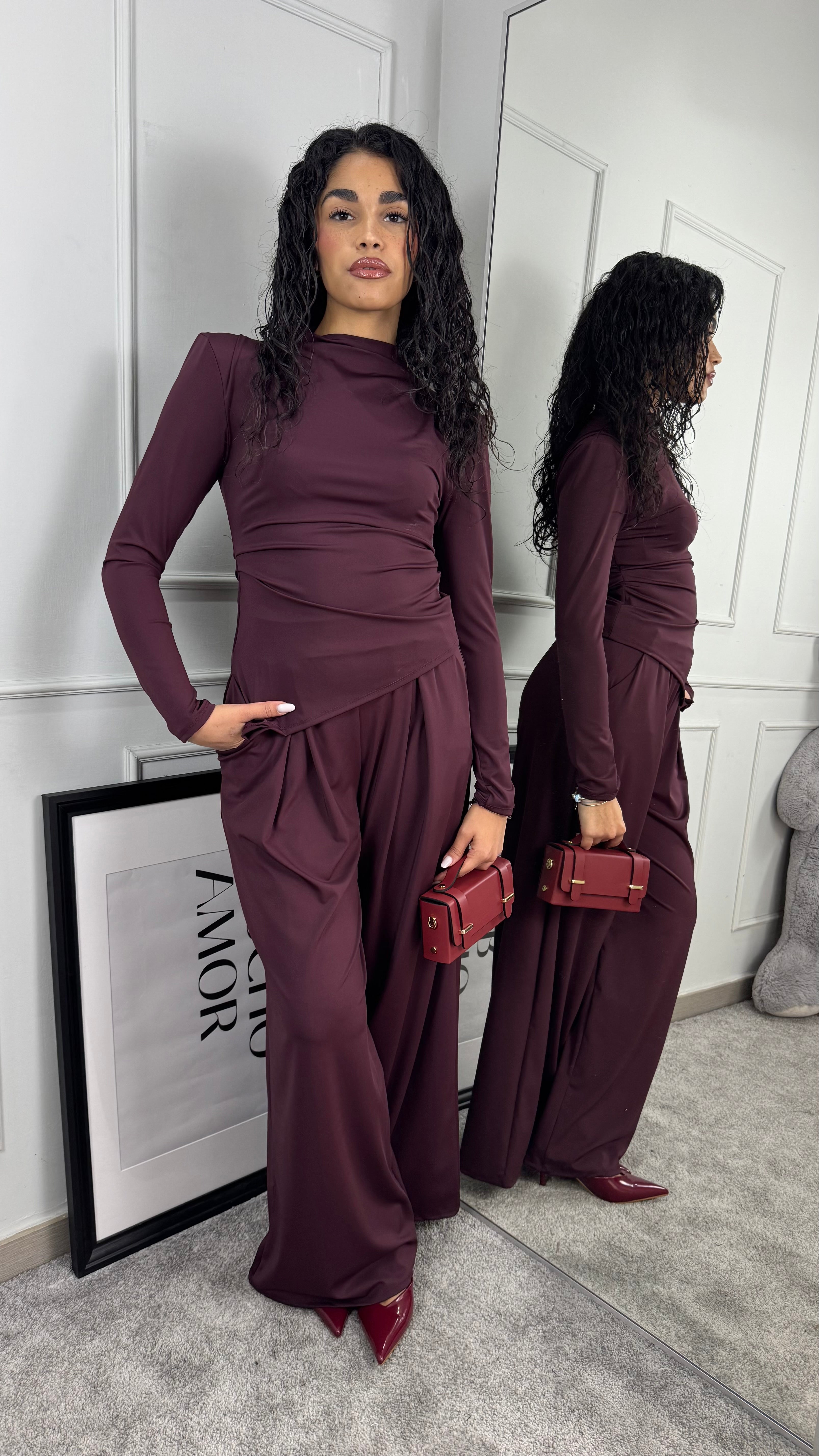 Cappotto crop bordeaux